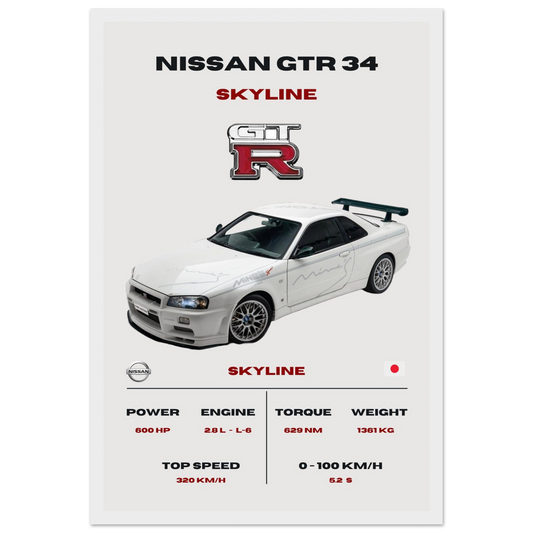 Nissan Skyline R34 Wall Art – Iconic JDM Framed Poster for Car Enthusiasts