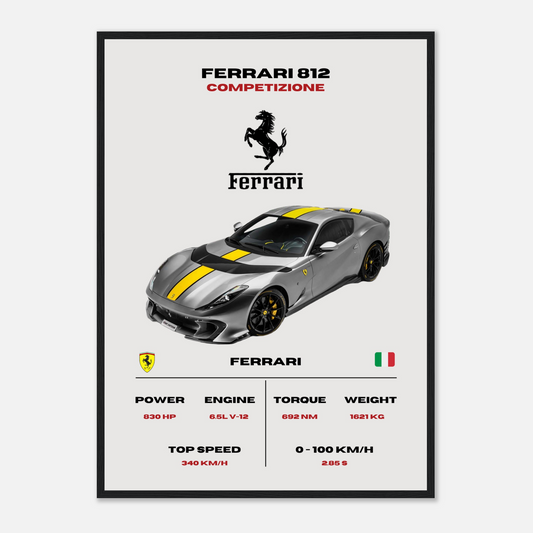 Ferrari 812 Competizione Wall Art – Luxury Supercar Framed Poster for Car Enthusiasts