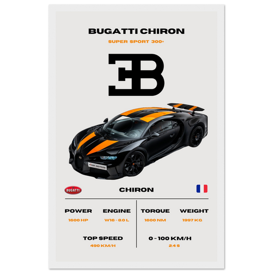Bugatti Chiron Wall Art – Luxury Supercar Framed Poster for Car Enthusiasts
